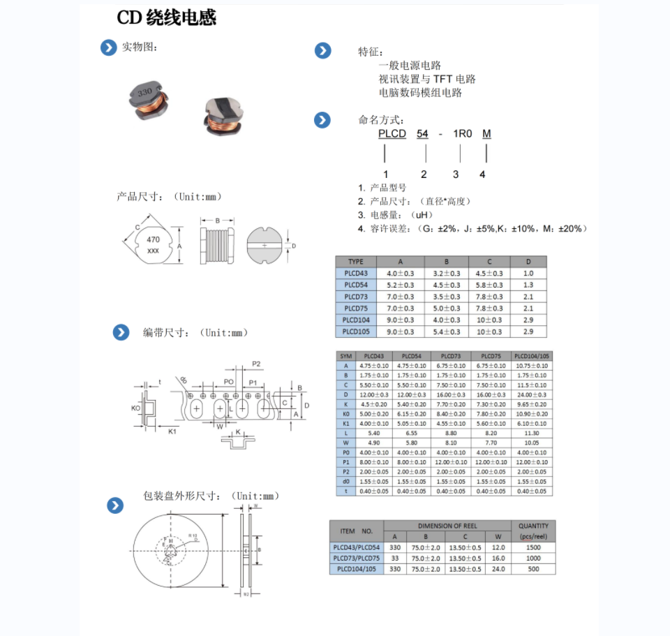 小尺寸, 耐大电流,低直流电阻。 无铅产品,符合RoHS标准。 载带包装,适用于回流焊SMT工艺。 广泛应用于升降压转化器,显示器,笔记本电脑,网络通信设备等。 工作温度:-40℃ ~ +125℃ (包含线圈发热)。